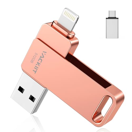 USB Minne för iPhone 512 GB Apple Certified Mfi Lightning,Vackiit USB 3.0 Minne Flash Extern USB Drive för Foton Videor Storage,USB C Minne Memory Stick för iPhone,iPad,OTG Android,Mac,P,iOS 3 in 1