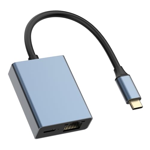 USB C till Ethernet-adapter, USB C till RJ45 Gigabit Ethernet (för 100 W PD snabbladdare), LAN-nätverksadapter 1000 Mbps för Chromecast TV/Stick, Phone, Mac-Book Air, Mac-Book Pro och Windows