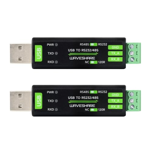 Waveshare 2pcs USB to RS232/485 Serial Converter, Onboard Original FT232RNL Chip, Features More Stable Transmission, Compatible with Mac/Linux/Android/Win11/10/8.1/8/7, etc