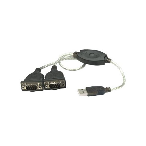 Manhattan USB-A to 2x Serial Ports Converter cable, 45cm, Male to Male, Serial/RS232/COM/DB9, Prolific PL-2303RA Chip, Black/Silver cable, Three Year Warranty, Blister - seriell adapter - USB 2.0 - RS-232 x 2