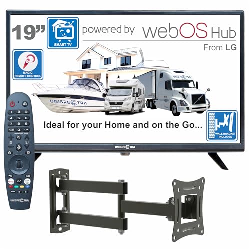 Unispectra ® 19" Smart TV (WebOS) Med Magic Remote, DLED HDR 230v 24v 12v, Triple Tuner, 3xHDMI, 2xUSB - För Husbilar, Husvagnar, Lastbilar, Båtar (Med Väggfäste)