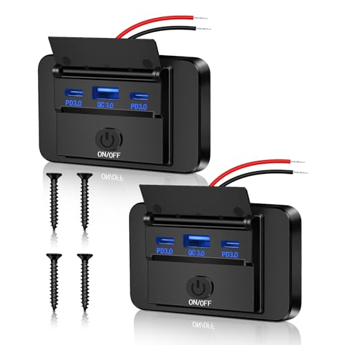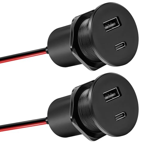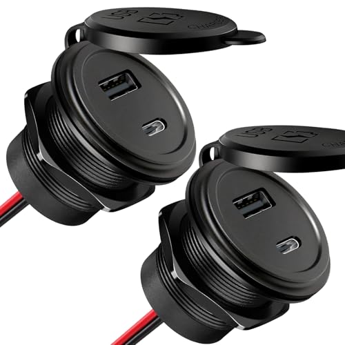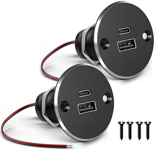 acegoo 12V USB-Uttag för Aluminium Bil Husbil USB C Uttag 12 Volt, Dual PD3.0 & QC3.0 Snabb laddning för Marin Båt Buss RV Lastbil, 2 Pcs