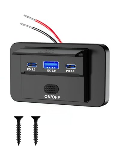 Obeaming 12V USB-Uttag Husbil, Dual Portar USB C PD3.0 20W Snabb laddning Aluminium för Marin Båt Buss Lastbil RV Marine ATV Husvagn 1 Pack