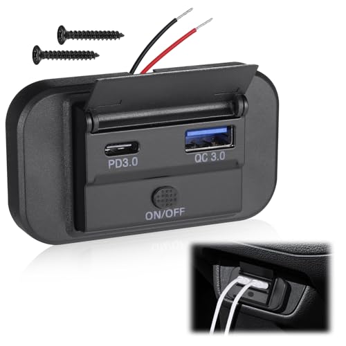 Boostable 12V USB C-uttag 65W PD3.0-port och 18W Quick Charge 3.0 USB-laddningsuttag för bärbara datorer, surfplattor och telefoner, vattentätt 12V/24V-uttag med strömbrytare för bil, båt och marin