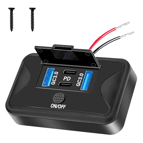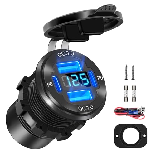 WIYETY USB-uttag motorcykel: PD3.0 QC3.0 billaddare uttag med LED-spänningsmätare, snabb laddning för bil, husbil, motorcykel, båt, yacht