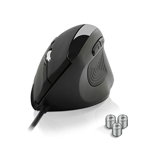 NEW WAY 3200 DPI vertikal och ergonomisk mus, trådbunden USB, justerbar vikt - perfekt för att vila handleden, handen och underarmen - musarmsyndrom och tennisarmbågsförebyggande