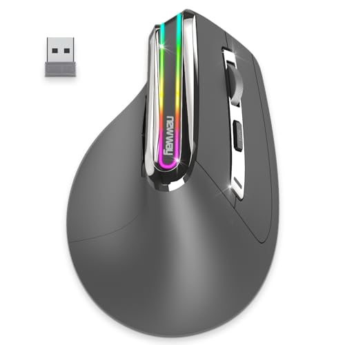 NEWWAY - 2024 Ny - Trådlös vertikal A9-mus - WiFi 2,4 GHz/trådlösa/USB C - uppladdningsbar - RGB - 2400 DPI - Ergonomisk - Tyst - Inbyggd nanomottagare 10 M - grå