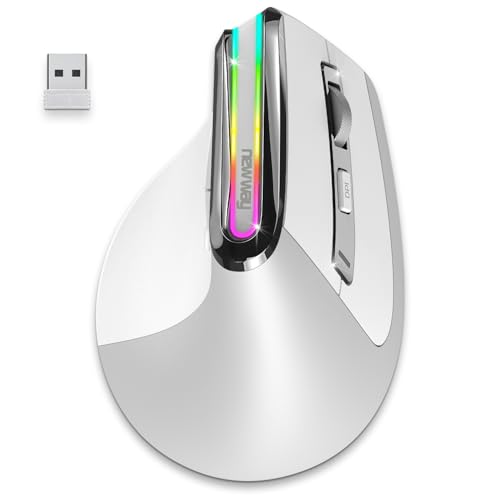 NEWWAY - 2024 Ny - Trådlös vertikal A9-mus - 2,4 GHz wifi wireless USB C - uppladdningsbar - RGB - 2400 DPI - Ergonomisk - Tyst - Inbyggd nanomottagare 10 M - vit