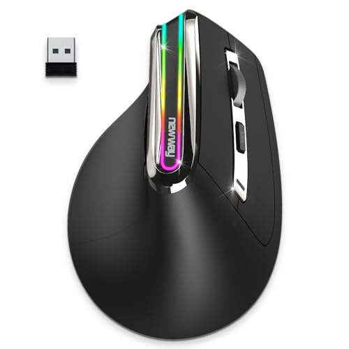NEWWAY - 2024 Ny - Trådlös vertikal A9-mus - 2,4 GHz wifi wireless USB C - uppladdningsbar - RGB - 2400 DPI - Ergonomisk - Tyst - Inbyggd nanomottagare 10 M - svart