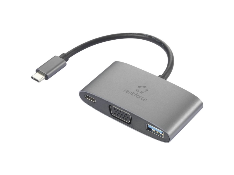 Renkforce Usb-C®, Vga Adapter [1X Usb-C® Stecker - 1X Usb-C® Buchse (Power Delivery), Vga-Buchse, Usb 3.2 Gen 1 Buchse A (Usb 3.0)] Rf-Hub-151 (Rf-4754992)