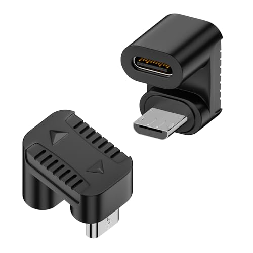 QIANRENON U-formad vinkel USB C till Micro USB-laddning dataadapter kontakt USB C hona till Micro USB hane 180 graders vinkel upp-kontakt 10 W (5 V 2A) 480 Mbps, U-formad stigning 5,4 mm, 2 st (upp)