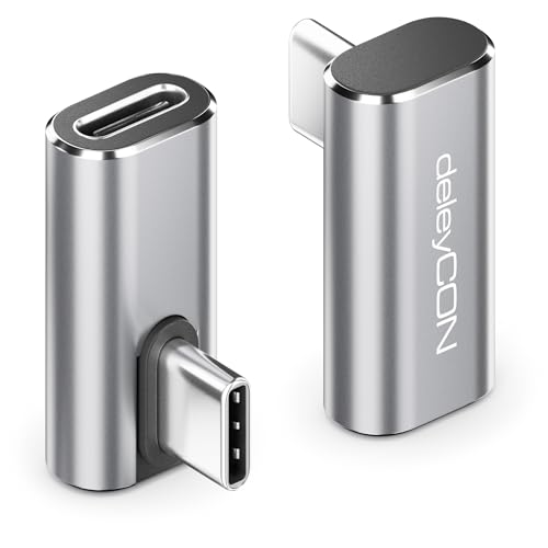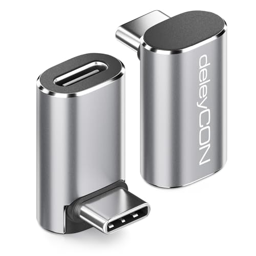 deleyCON USB-C-Adapter Vinkel 90 Grader (2 St) 40Gbps, 240W, 8K60Hz, Aluminiumhölje, Typ C-Kontakt till Uttag Kompatibel med Smartphone Surfplatta Bärbar Dator PC Switch och Mycket Mer.