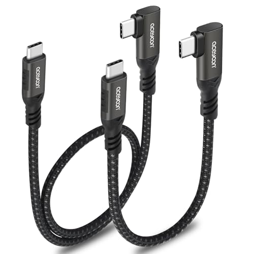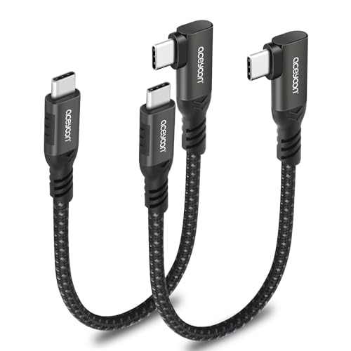 aceyoon USB C-kabel kort 20 cm, 2 stycken 240 W USB C till C-kabel 5A PD snabbladdningskabel USB typ C vinkel 90 grader med e-Maker chip för iPhone 16 15 Plus Pro Max, för MacBook, för Galaxy