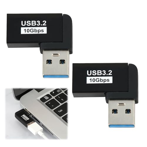 BIVOFU 90 graders USB-adapter, USB 3.2 grad, USB vinkel, hane till hona, L-vinkel, snabb dataöverföring, kompatibel med USB 3.0/2.0/1.0, 2 st, vänster vinkel sidokurva