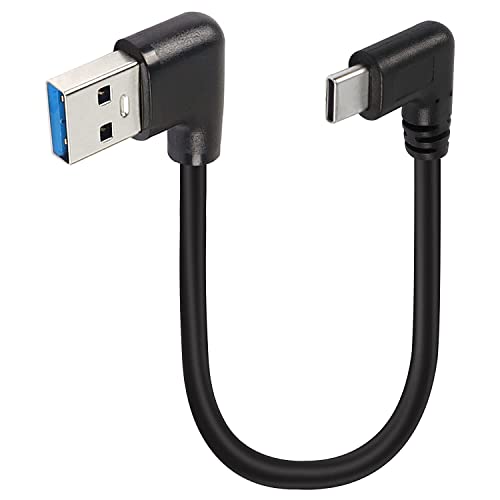 GELRHONR Vänster vinkel USB till typ C-kabel kort, 25 cm USB 3,0 till USB C-kontakt till kontaktkabel, typ C laddningskabel 18 W snabbladdning 5 Gbps dataöverföring