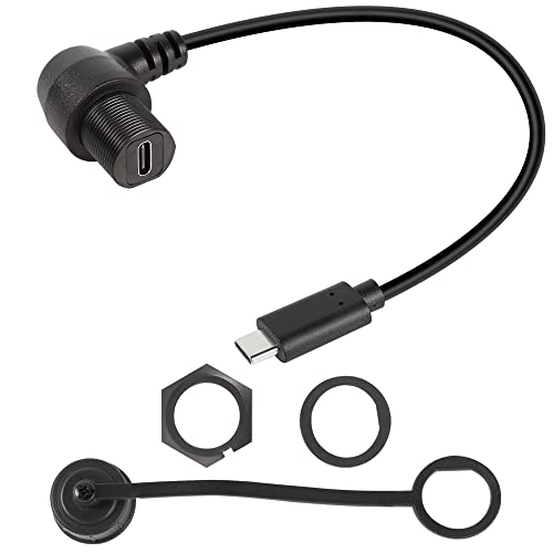 QIANRENON 90 graders vinkel USB C 3.1 panel infälld vattentät kabel 10 Gbps typ C 3.1 hane till höger vinkel hona förlängningskabel, gängad till instrumentbräda eller panel, 30 cm/11,8 tum