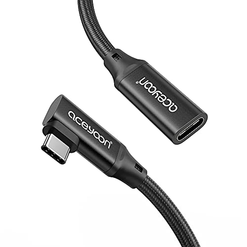 Aceyoon USB C förlängningskabel vinkel 0,5 m, USB typ C 3,1 Gen2 10 Gbps kontakt till uttag förlängningskabel, 100 W PD och 4K@60Hz videoöverföring kompatibel med MacBook Pro/Air, Galaxy S22/S21/S20