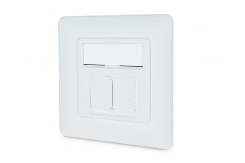 DIGITUS LSA kopplingsdosa Cat-6-2 portar RJ45 - Utanpåliggande eller infällt nätverksuttag - Horisontell matning - Designkompatibel - 1 Gbps - Skärmad - PoE-kompatibel - Vit RAL9003
