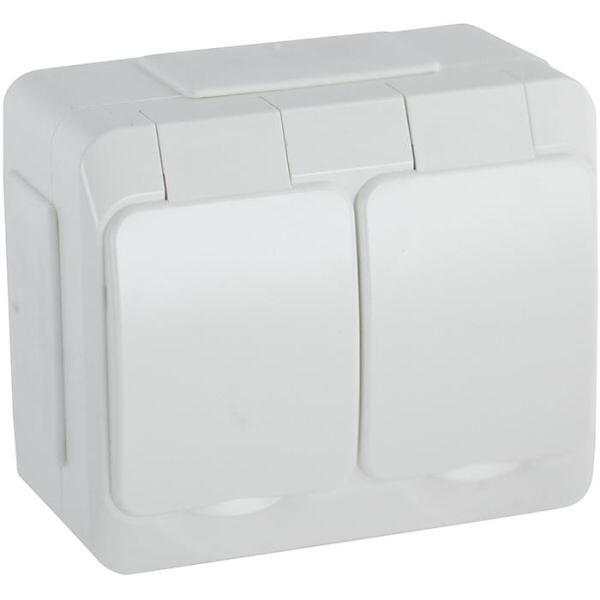 Schneider Electric Exxact WDE002294 Vägguttag 2-vägs, vit, IP44, utanpåliggande Lås, skruvanslutning