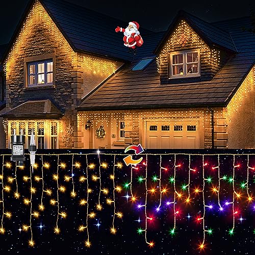 Elegear 10 m, 400 LED, isregn, ljuskedja, utomhus, utbyggbar ljusslinga med timer IP44, varm vit, istapp, ljuskedja, fönster, 8 lägen, julbelysning för juldekoration takfot trädgård, balkong