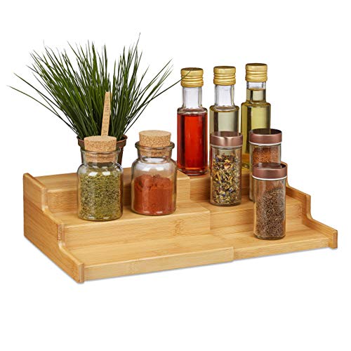 Relaxdays Kryddhylla bambu, 3 våningar, utdragbar, naturligt utseende, kryddtrappa arbetsyta, HBT: 9 x 38 x 22 cm, natur