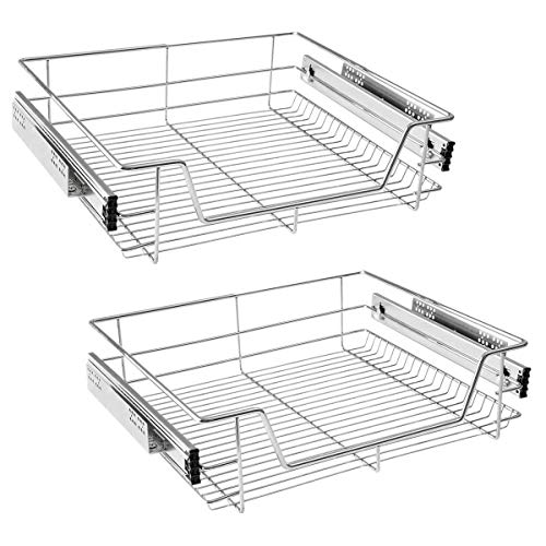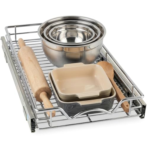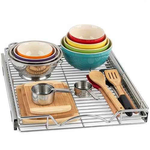 HOLD N 'Storage utdragbar skåp låda organisatör, kraftig med begränsad livstidsgaranti – utskjutbara hyllor, -28 cm B x 50 cm D – kräver minst en 30 cm skåpöppning, stålmetall, kromfinish