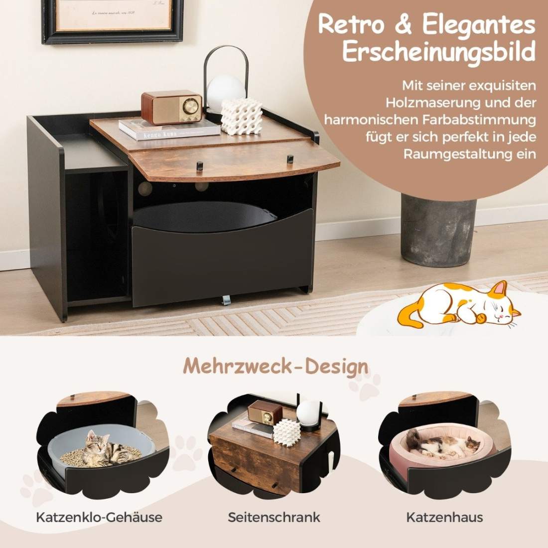Kattskåp för katttoalett katthus med utdragbar låda & ingång & krok & vikdörr 78 x 50 x 51,5 cm