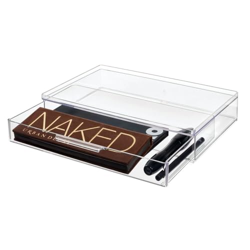 iDesign Kosmetikaorganisatör, utdragbar låda av plast, praktiskt toalettbordstillbehör för att sortera smink, tillbehör och mer, transparent