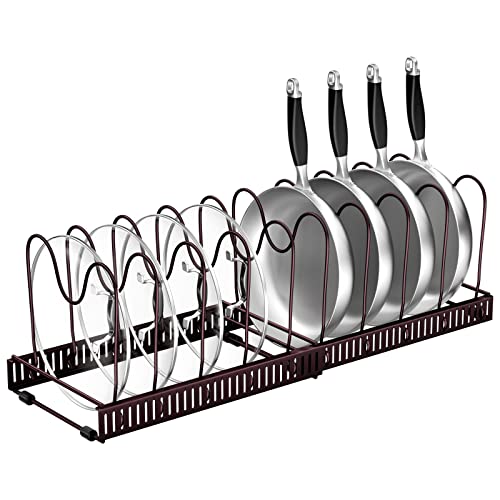 Fousenuk Grytlockshållare, grytlock förvaring med 10 justerbara fack, kökspannearrangör, lockhållare låda, utdragbar pannhållare, kastrullförvaring, kastrullhållare (brons)
