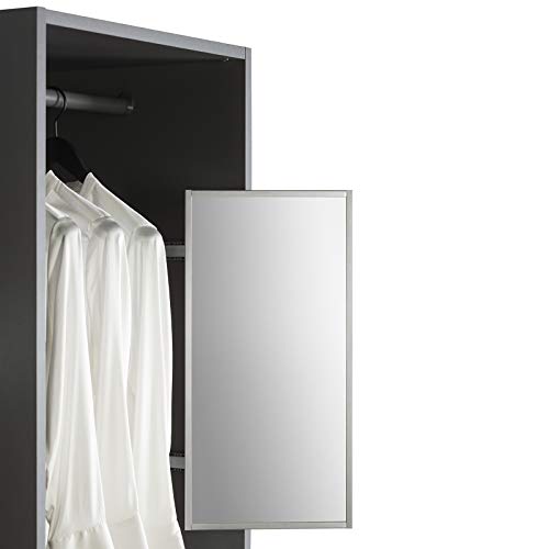 Emuca - Utdragbar spegel för garderobsinredning Quartz, 180° rotation, 1.000x300mm, Aluminium, glas och stål, Titan
