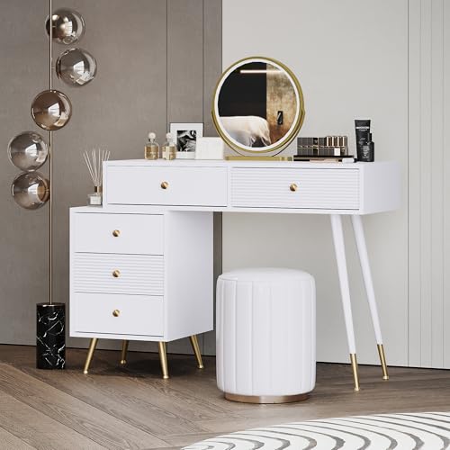 BXEYXE Sminkbord, set med belysning och spegel, med justerbart sidoskåp och utdragbar design. Mått: B 100/H78/T40 cm (utan pall)