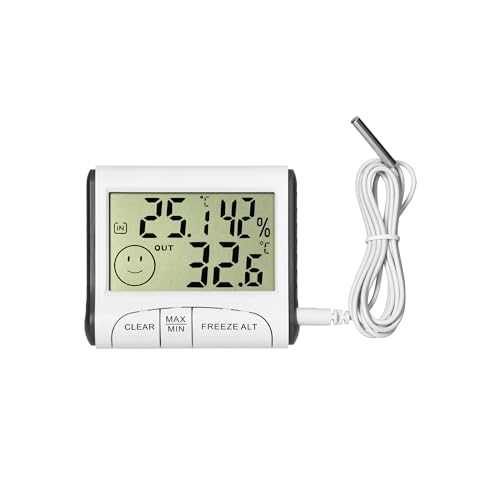 TFA Dostmann digital inne/ute termometer, högsta och lägsta mätvärden, kontroll av frys/akvarium, digital termometer med kabelgivare, 30.1020