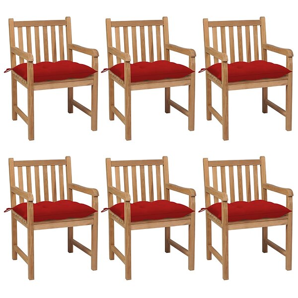 vidaXL Trädgårdsstolar 6 st med röda dynor massiv teak 3073052