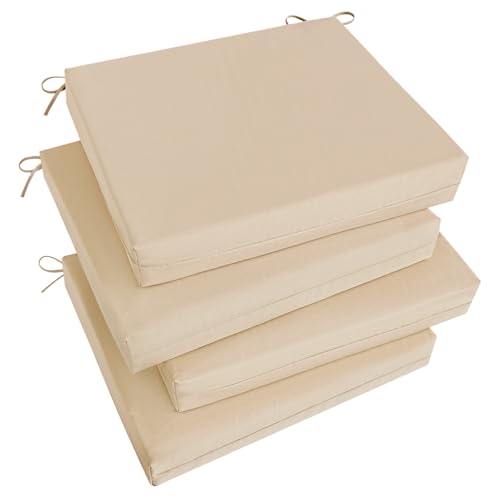 Basic Beyond Utomhusstolskuddar för utemöbler – kvadratiskt hörn utomhus stolkudde, set om 4, vattentäta sittdynor med band, 47 x 40,6 x 7,6 cm, beige