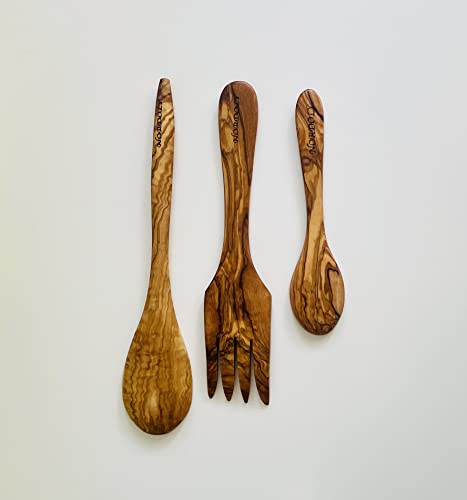 LAGUIOLE - Block of 5 Utensils - Pakka Wooden Handles - Meat Knife, Bread Knife, Vegetable Knife, Carving Fork, Sharpener - Hevea Wooden Block - Ideal Gift -