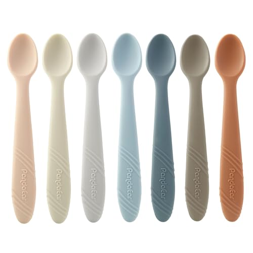 PandaEar 7 Pack Silicone Baby Feeding Spoons, First Stage Training Spoon Infant Utensils Feeding Supplies, BPA Free Gum-Friendly Soft Tip Baby Led Weaning Spoon