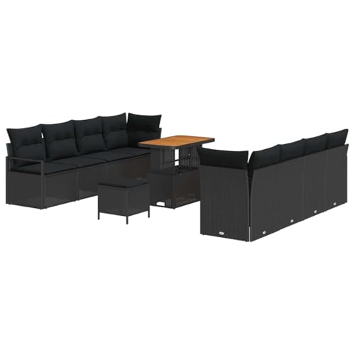 vidaXL Lounge Set 11 Delar Svart Rotting 4-sits Utesoffa