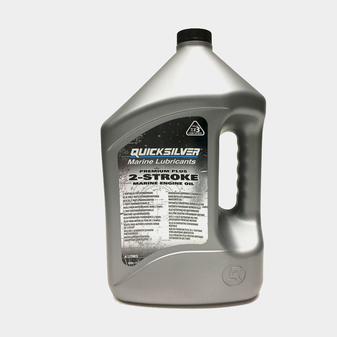 Delsyntetisk olja till 2-takt utombordare Quicksilver Premium Plus 2-Stroke Marine Engine Oil Synthetic Blend, NMMA TC-W3, 4 liter