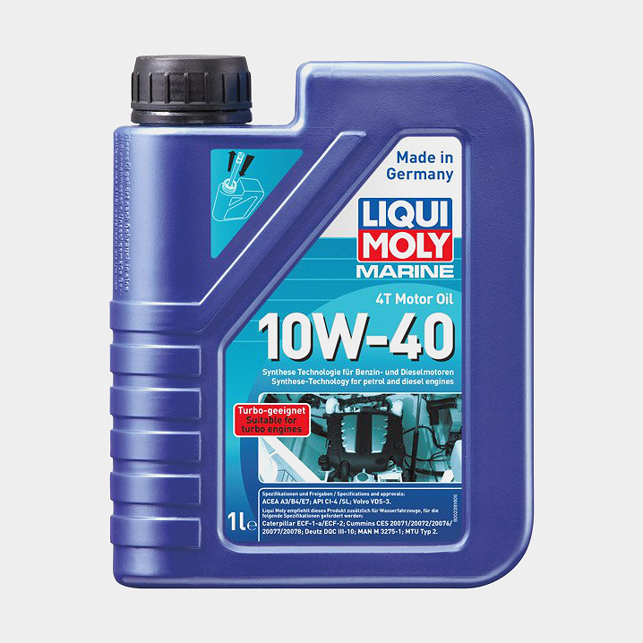 Delsyntetisk olja till 4-takt inom- & utombordare Liqui Moly Marine 4T Motor Oil 10W-40, för bensin- & dieselmotorer, ACEA A3/B4/E7 & API CI-4/SL & Volvo VDS-3, 60 liter