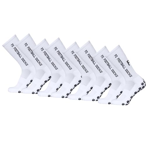CalmGeek Sport Fotbollsstrumpor för Män Tre Par Gripstrumpor Utomhus Storlek Kompressionsstrumpor Stretch Basketboll Hockey Löpning Maraton, FS Vit 4PACK, 36, Vit, 36 EU