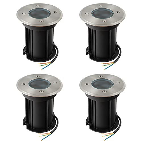 URing Golvspotlight utomhus för GU10 – IP67 infälld golvlampa utomhus runda golvlampor utomhus rostfritt stål borstad yta golvbelysning utomhus 230 V för terrass trädgård, utan glödlampor