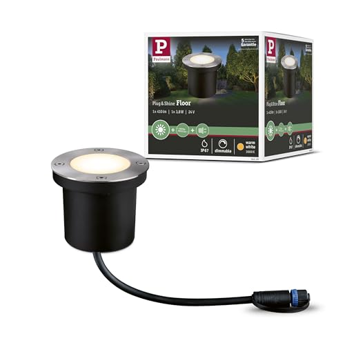 Paulmann 94228 Plug & Shine LED utomhusbelysning infälld golvlampa rund inkl. 1x3,6 W IP65 dimbar utomhus rostfritt stål metall, plast 3000 K