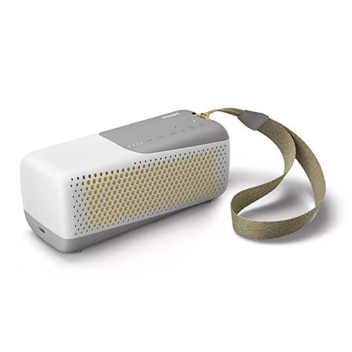 10 W Bluetooth-högtalare, vit färg, kraftfullt ljud, trådlös anslutning, perfekt för musik hemma eller utomhus.