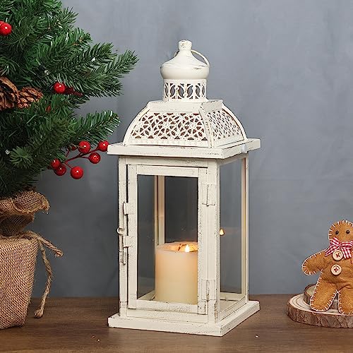 DEKORKEY Lanterna dekorativ inomhus och utomhus, 35 cm stora ljuslyktor med klart glas, vintage metall hängande ljushållare bondgårdshylla bröllop framsida veranda uteplats dekor, juldekorationer