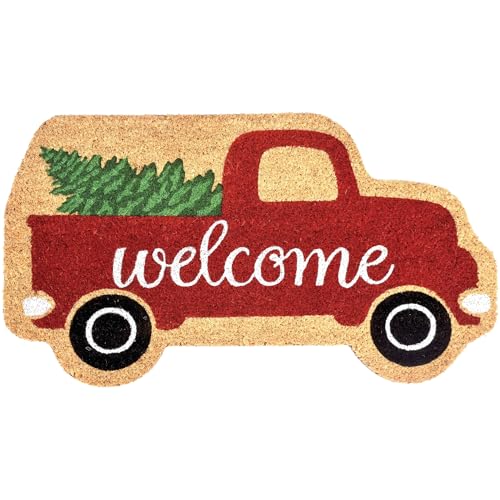 Comart, Konturerad julmatta, kokosfiber julmatta, färgglada juldekorationer, entré utomhus eller inomhus, halkfri, festtillbehör, julgransritning 40 x 70 cm