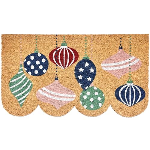 Comart, Konturerad julmatta, kokosfiber julmatta, färgglada juldekorationer, entré utomhus eller inomhus, halkfri, festtillbehör, ritning julbollar 40 x 70 cm