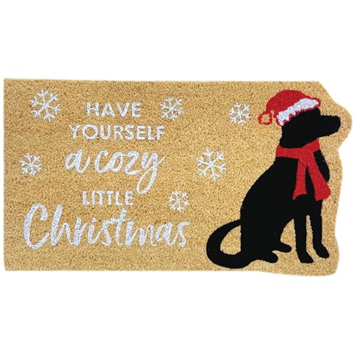 Comart, Konturerad juldörrmatta, kokosfiber julmatta, färgglada juldekorationer, entré utomhus eller inomhus, halkfri, festtillbehör, julhundteckning 40 x 70 cm