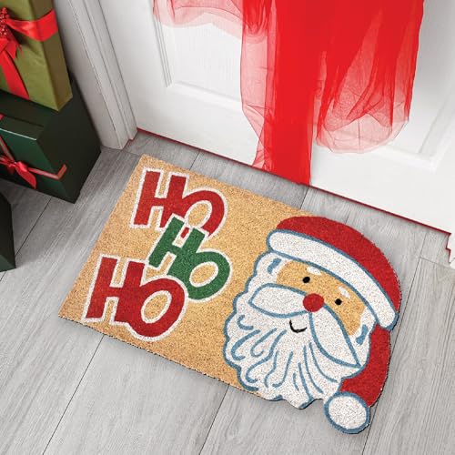 Comart, Konturerad juldörrmatta, kokosfiber julmatta, färgglada juldekorationer, entré utomhus eller inomhus, halkfri, festtillbehör, tomteteckning 40 x 70 cm