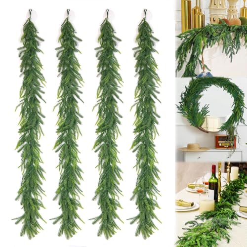 Juldekor, konstgjorda Norfolk tallgirlanger, äkta touch vintergirlang, grön konstgjord grönska girlang för bord, mantel, vägg, inomhus, utomhus juldekorationer 180 cm (4 st grön)