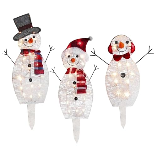 Ljus upp snögubbe 3st LED Snowman Juldekorationer Akryl Xmas Decor Snowman Ornaments med batteri för utomhus trädgårdsgräsmatta